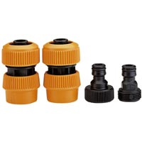 2 mâles / 2 femelles. En plastique. 4 pièces. Pour tuyau d'arrosage